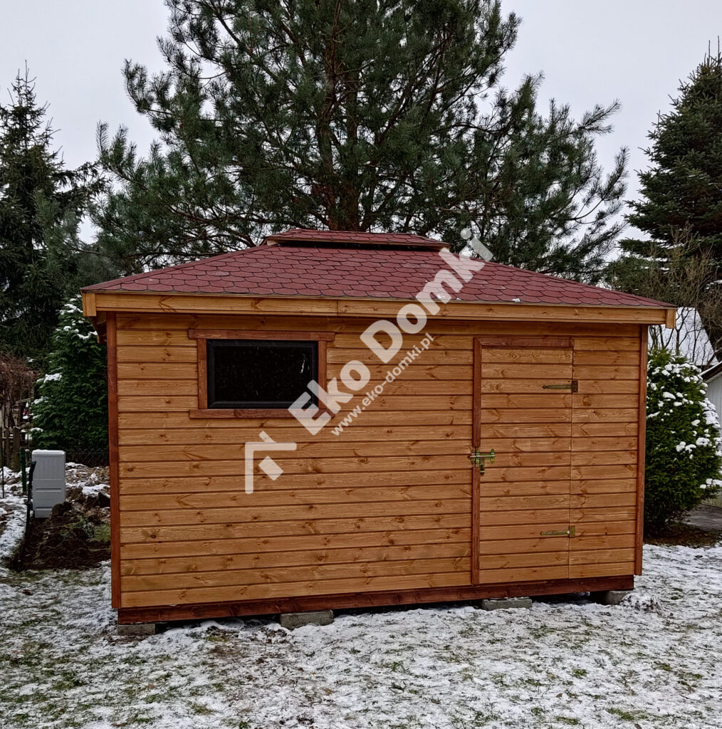 - Domek wykonany z drewna sosnowego i świerkowego I gat.