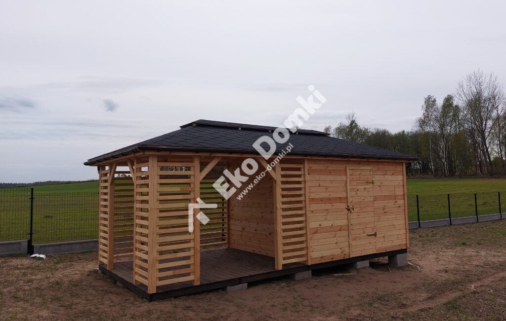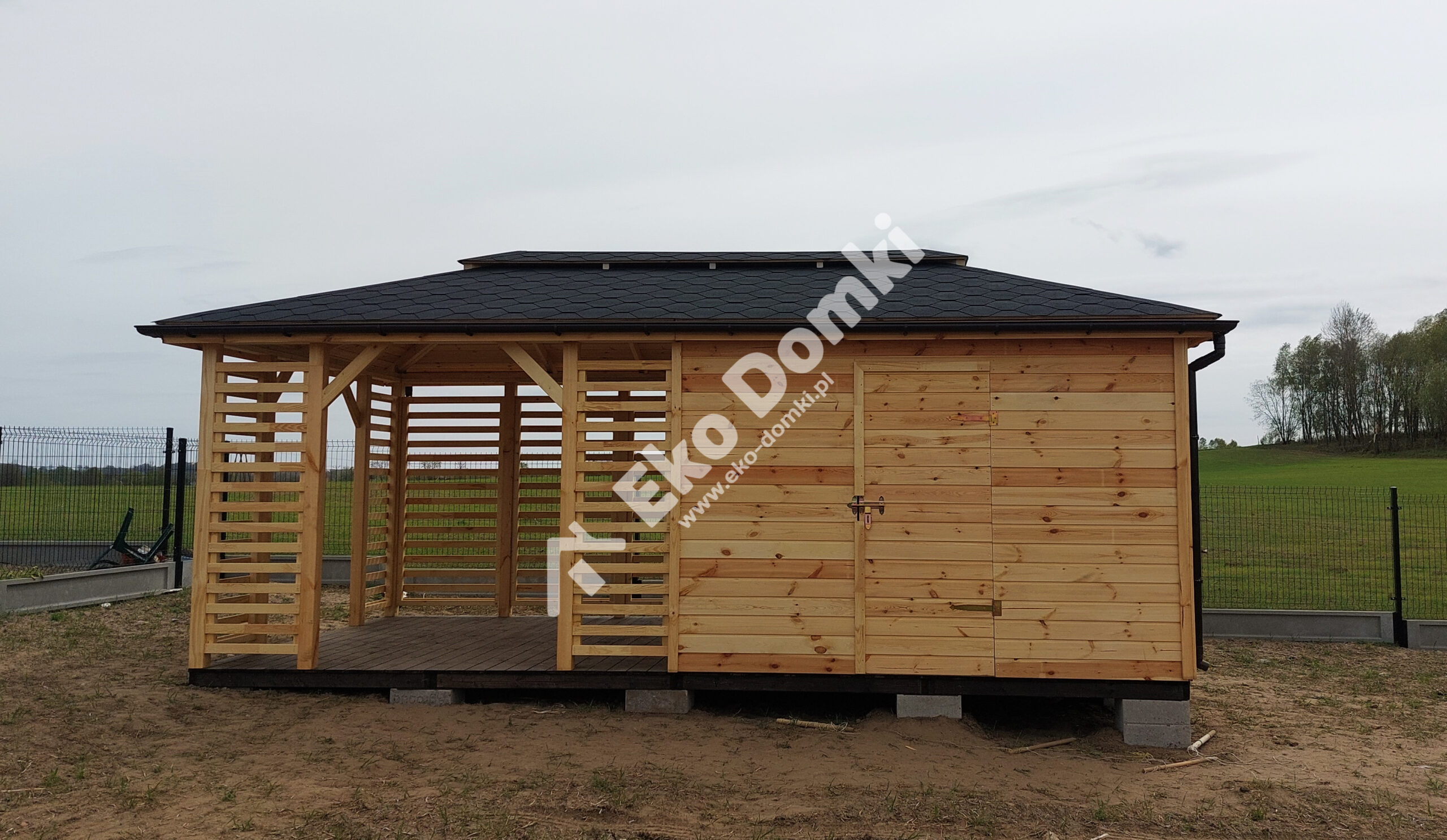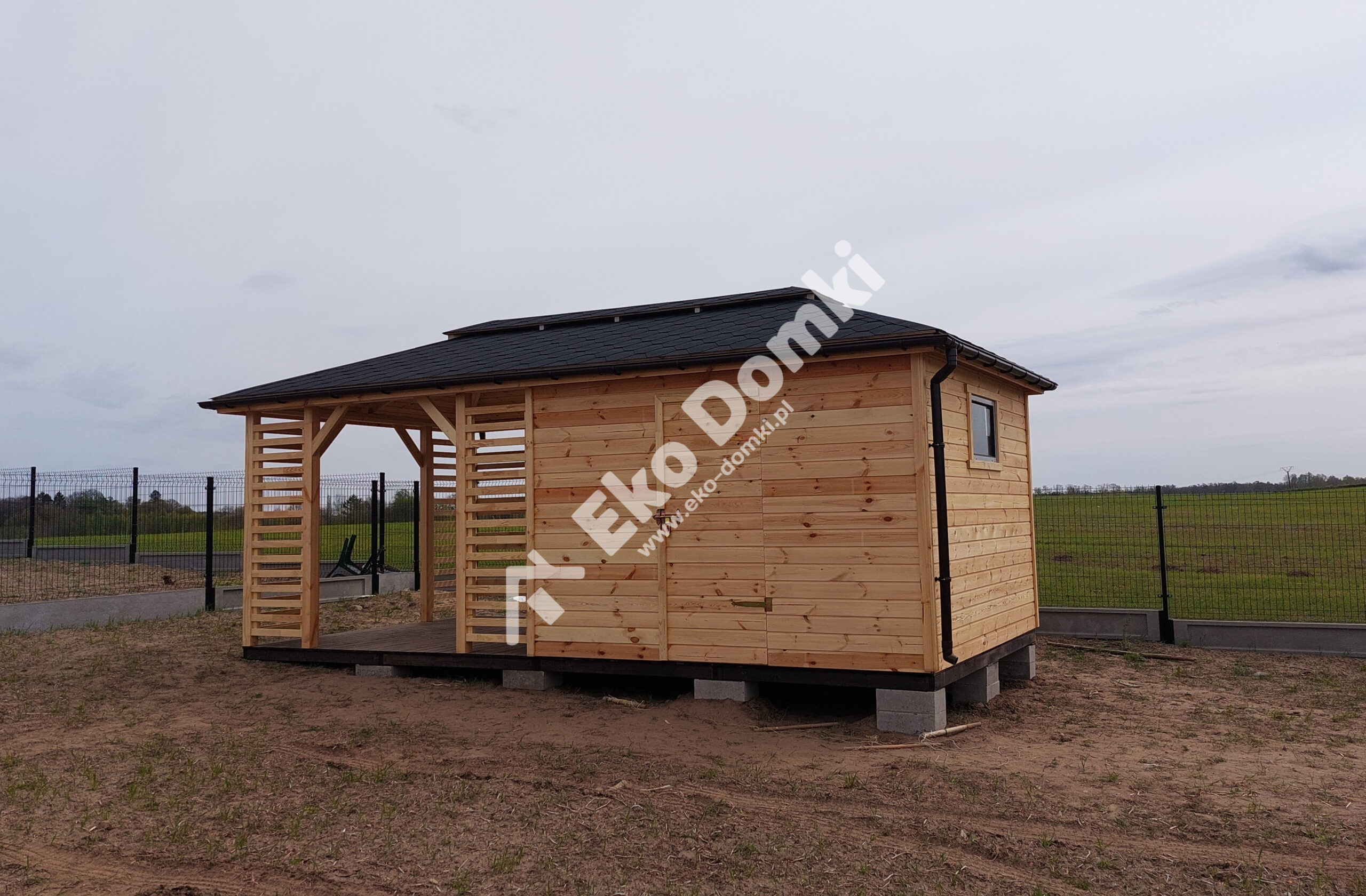 - Domek wykonany z drewna sosnowego i świerkowego I gat.